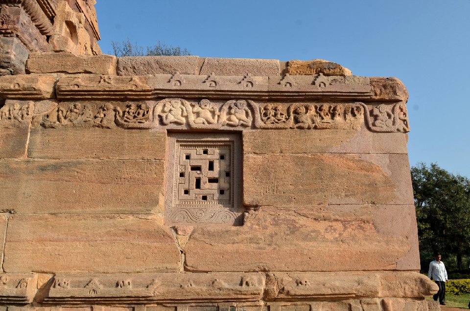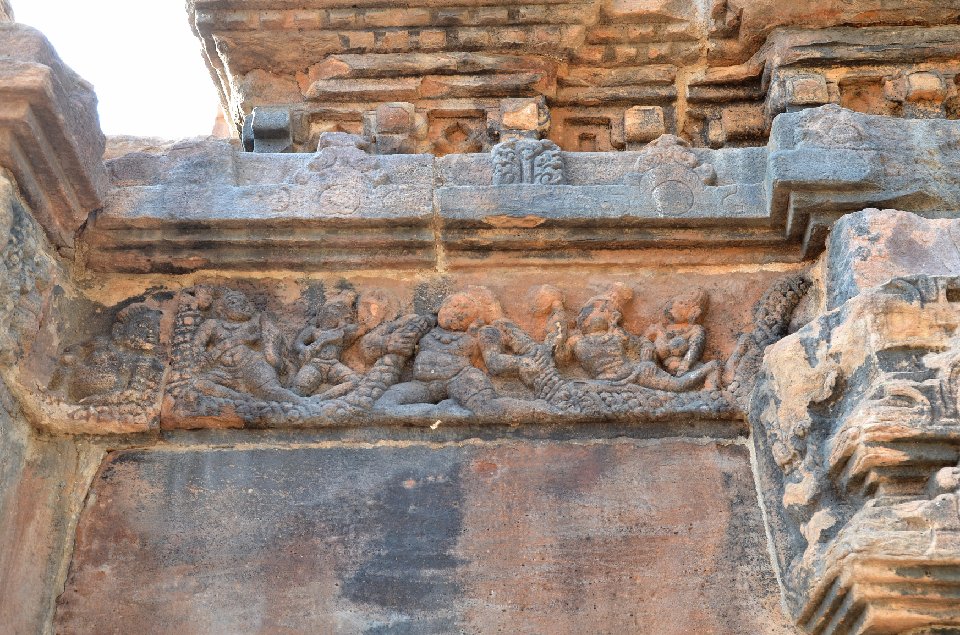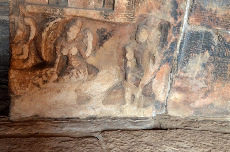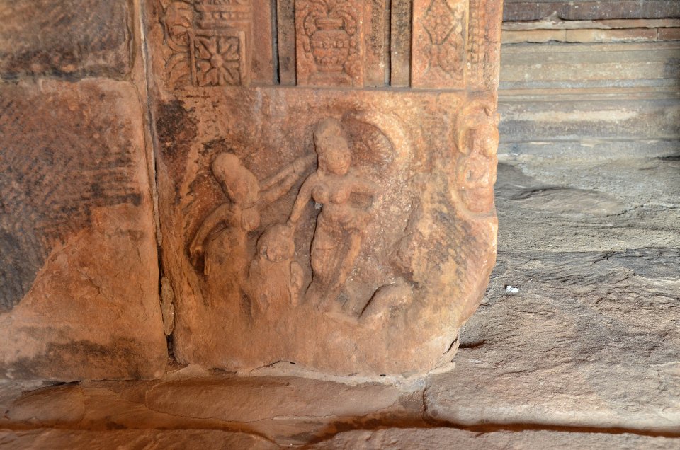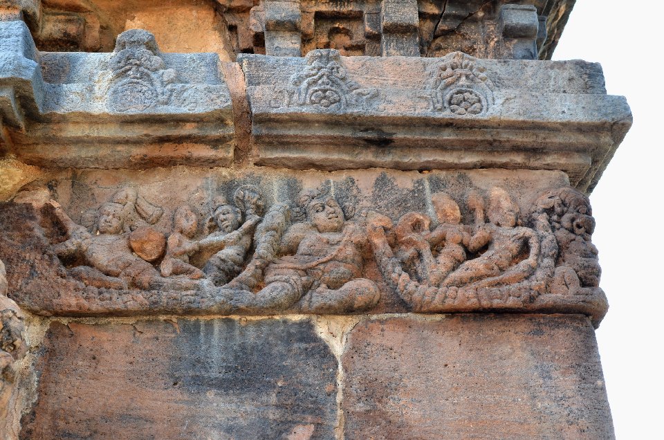 ナンディに乗るシヴァとウマー(中)、ブラフマー(左)、ヴィシュヌ(右))、ガンガー、ヤムナー
