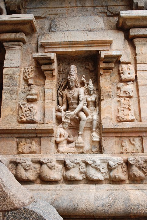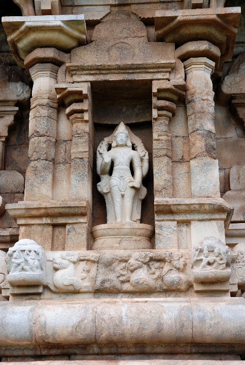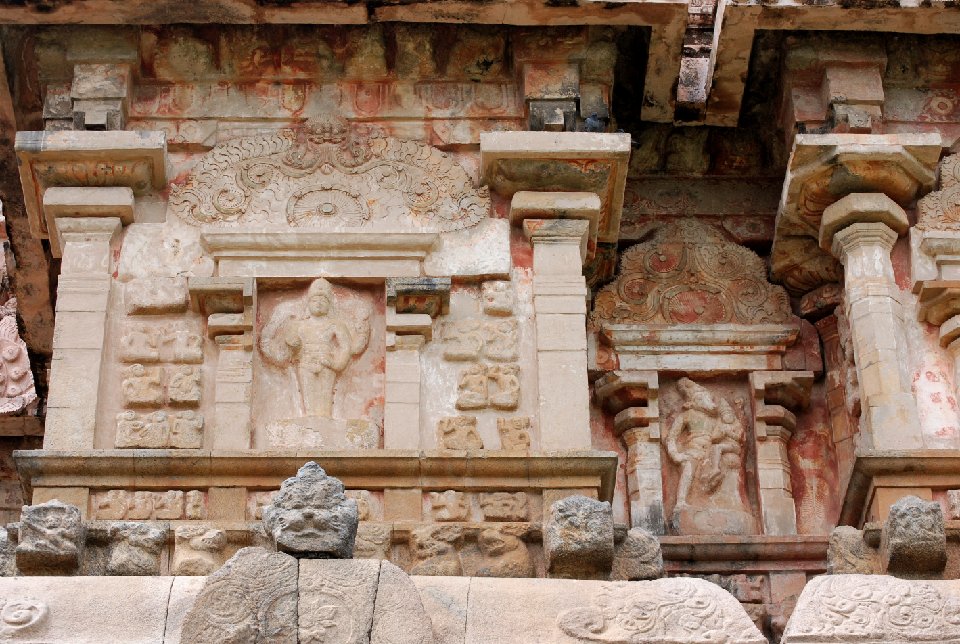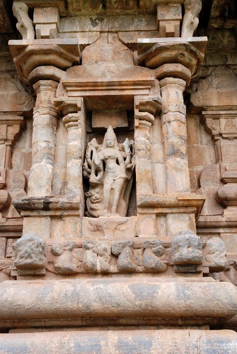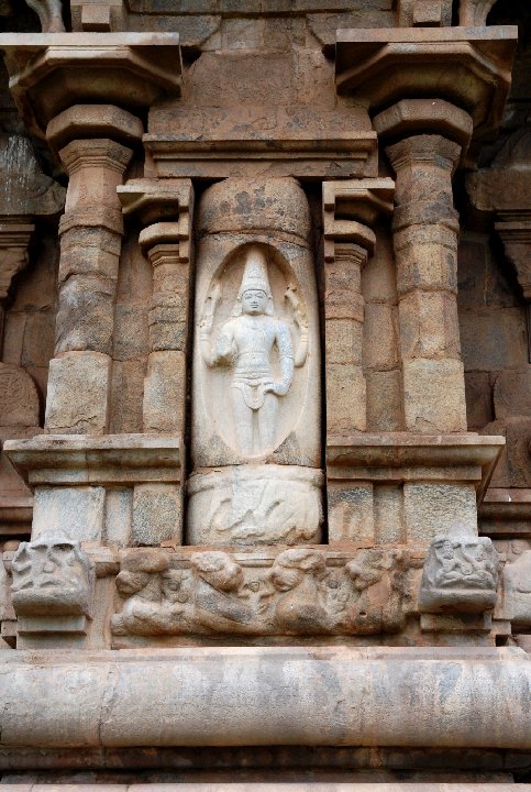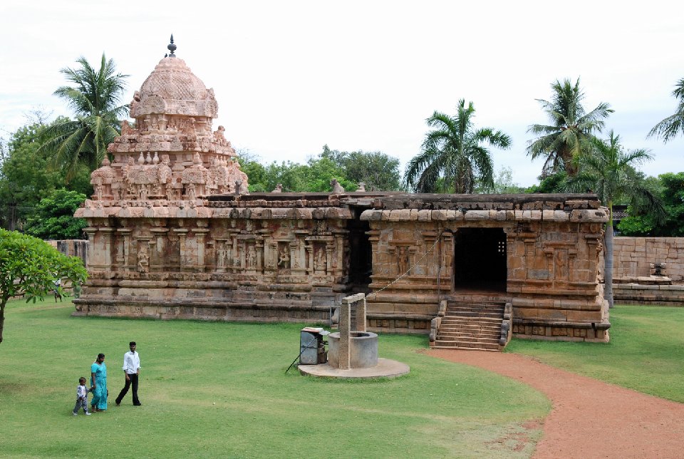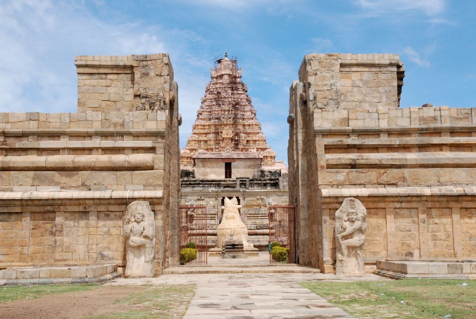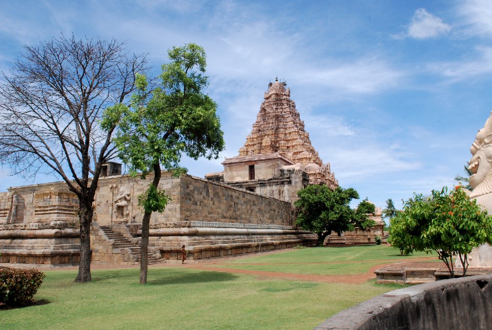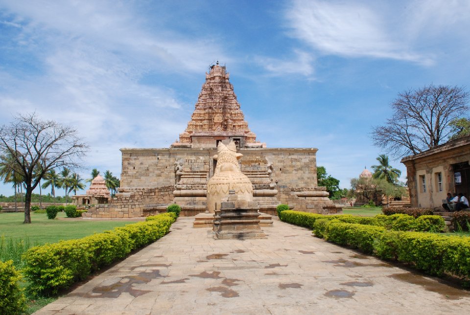 ラージェンドラ1世がチョーラ朝の新首都に建立した。建築的完成度においてはチョーラ寺院の最高傑作。